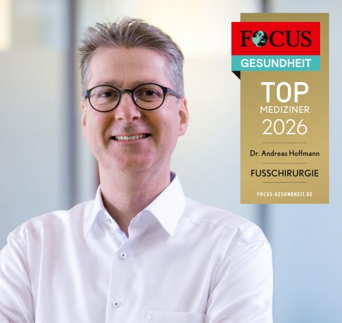 Dr. Andreas Hoffmann wurde für sein Tätigkeitsfeld Fußchirurgie als TOP-Mediziner, der höchsten Einstufung der Fokus Ärzte Liste, ausgezeichnet.